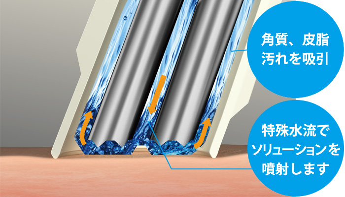 特殊な水流&吸引で、モイスチャーピーリングと美容液導入ができる肌に優しいピーリングマシンです。