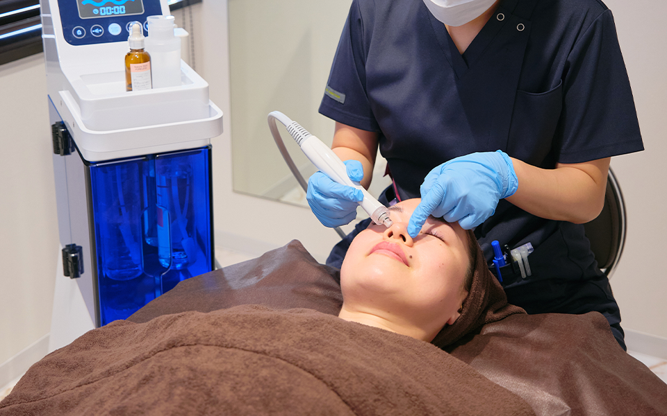 基本的には痛みがなくリラックスして受けていただけます。ピーリングで使用する薬剤によるピリピリとした刺激感や、吸引圧によるわずかな痛みを少し感じることはありますが、大半はすぐに消失します。