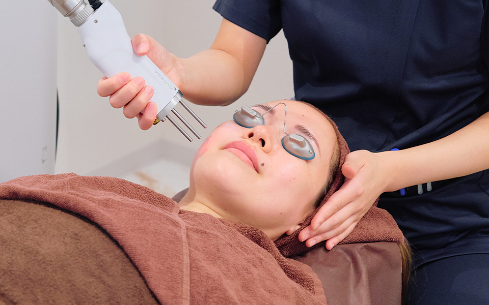 低出力のレーザーを持続的に広範囲に繰り返して照射していくのがピコトーニングの照射治療です。
